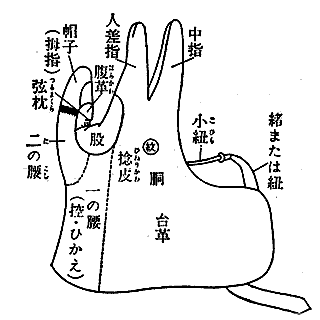 ・「革」と「皮」の違いは? 通常ナメしたものを「革」と書くと考えると、ユガケの「カワ」は全て「革」が正しいと思われる。