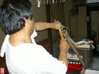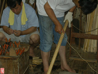 籐を巻き、握り革を巻いて仕上げます。