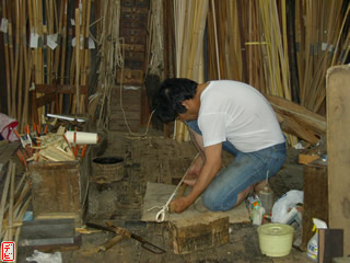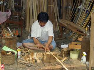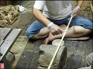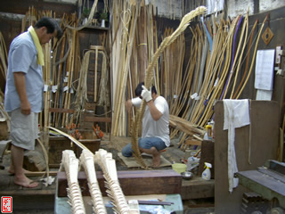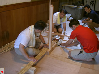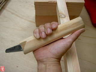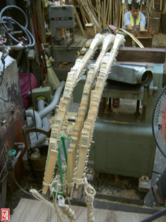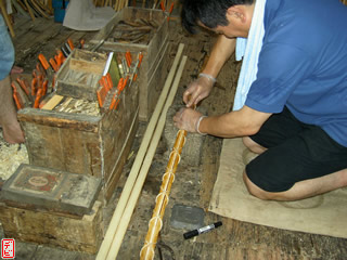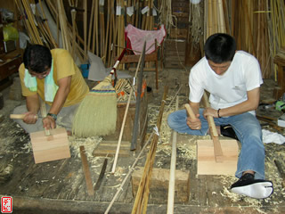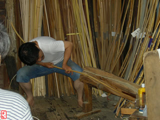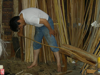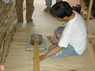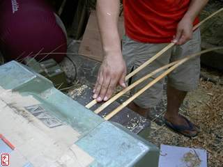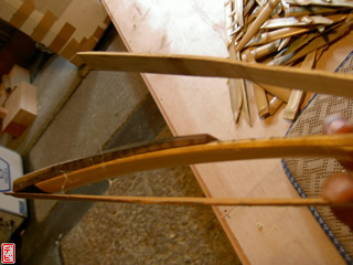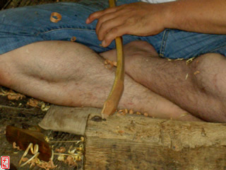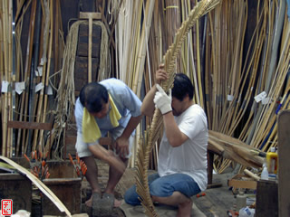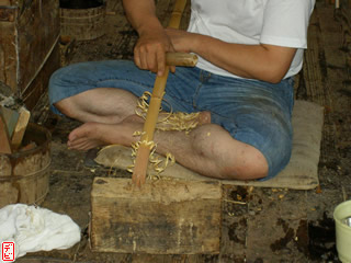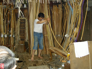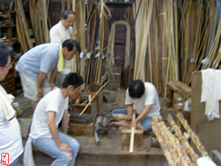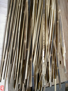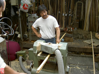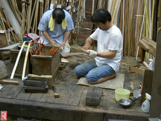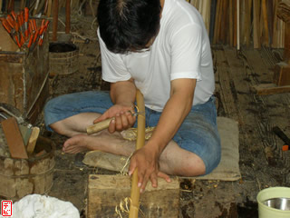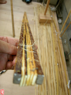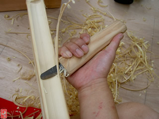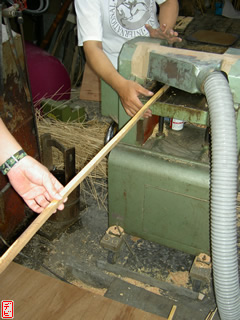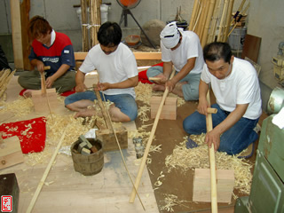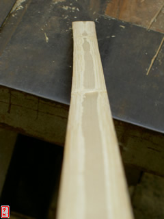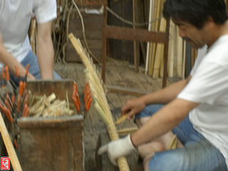 刃物や鉋で側木側を削り、成形します。「荒村(あらむら)・新村(にいむら)」と言います。その後、数千本射込み、調整のために「小村(こむら)」「射手村(いてむら)」と続きます。